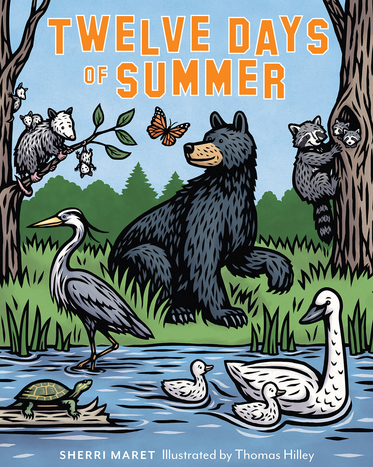 Twelve Days of Summer is the sequel to another book I illustrated, Twelve Days of Winter. In this book, wildlife are observed enjoying the warmer weather, and baby animals venture out with their parents. The book was written by Sherri Maret and published by Muddy Boots in 2024.